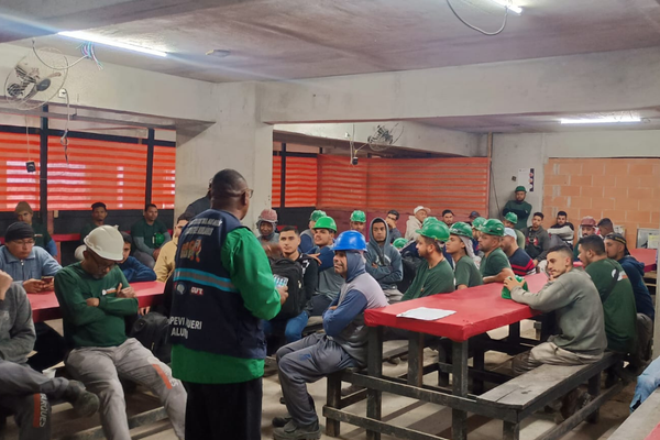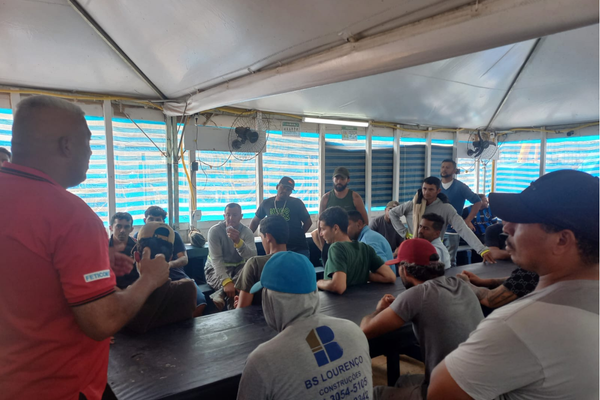 Sindicato Bocadura dialoga com trabalhadores da construtora NG, em Barueri