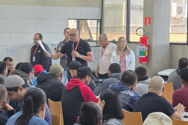 Sindicato Bocadura realiza assembleia com trabalhadores, em Mairinque-SP