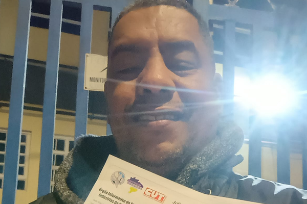 Trabalhadores da empresa Tebas recebem boletim informativo entregue pelo Sinticom Jundiaí
